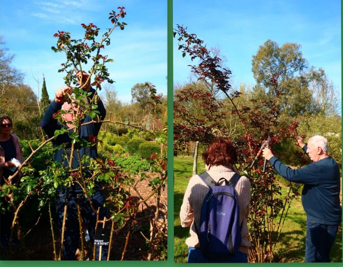 Le fameux dicton est aussi valable pour les rosiers et c’est sous un beau soleil que Christian Hastings nous a accueilli dans son magnifique jardin où les rosiers sont nombreux. Notre hôte en avait taillé déjà beaucoup mais c’était sans compter sur l’intervention ad hoc de Jean-Yves Caillard !